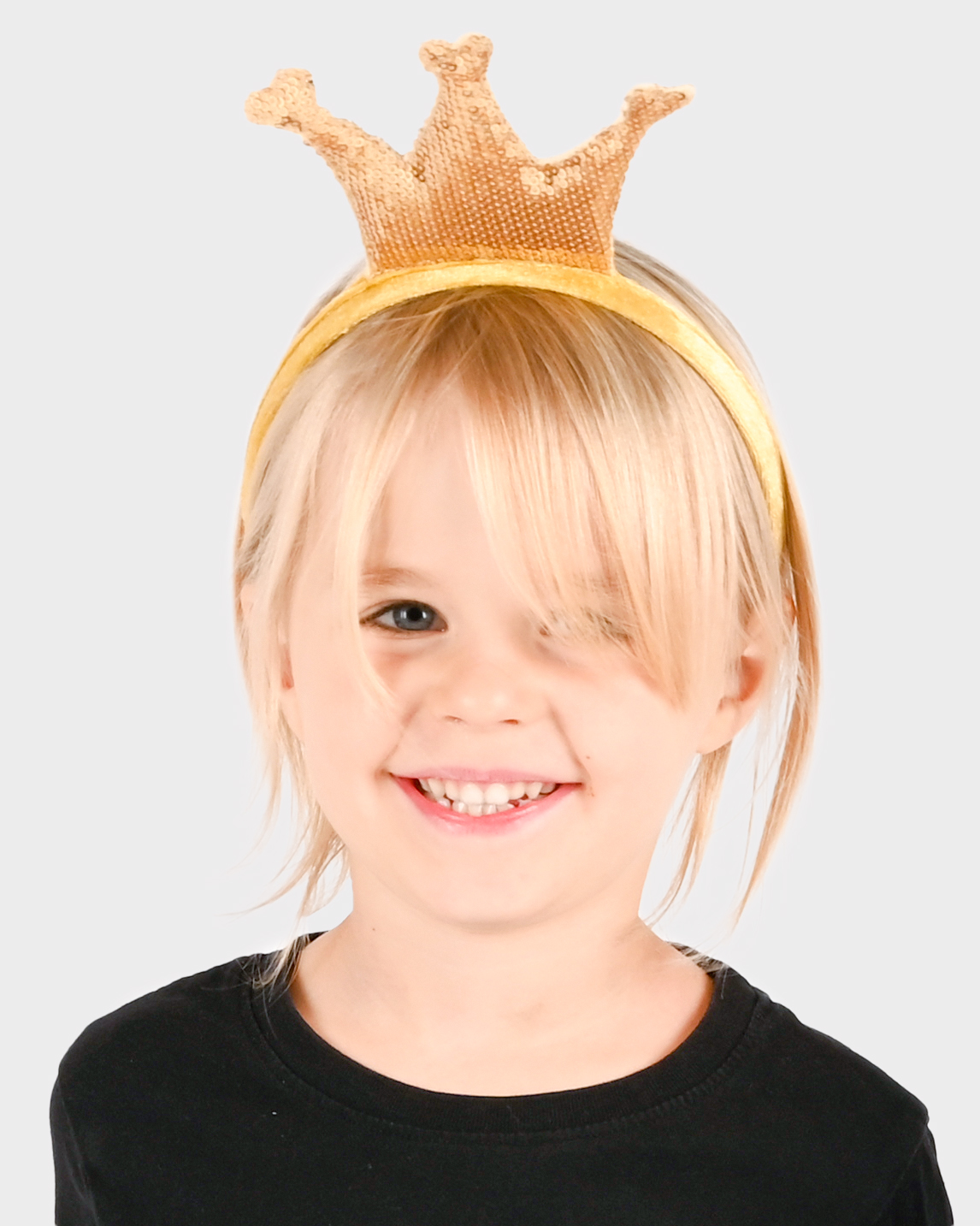 Med en KRONA på huvudet blir världen lite mer magisk. Detta glittrande diadem med paljetter passar alla små kungligheter som älskar att glänsa lite extra vare sig det är vardag eller fest.