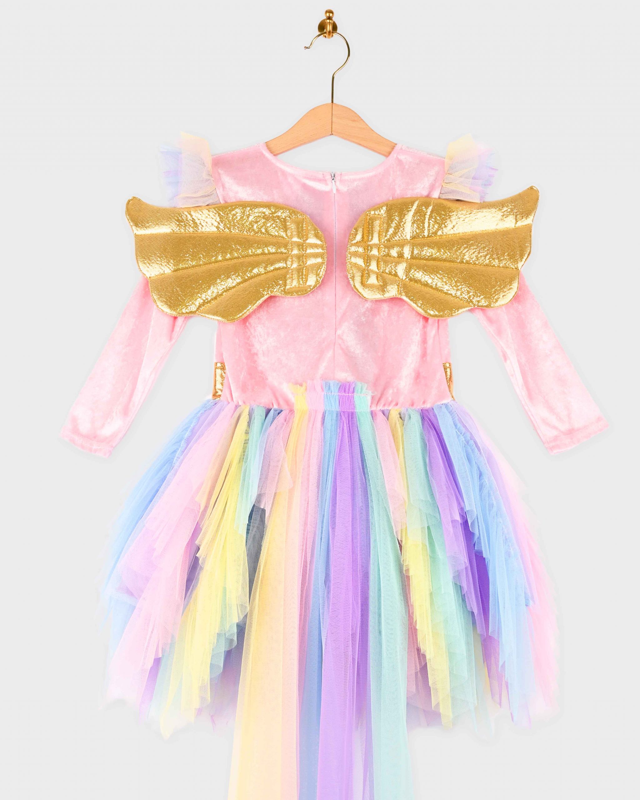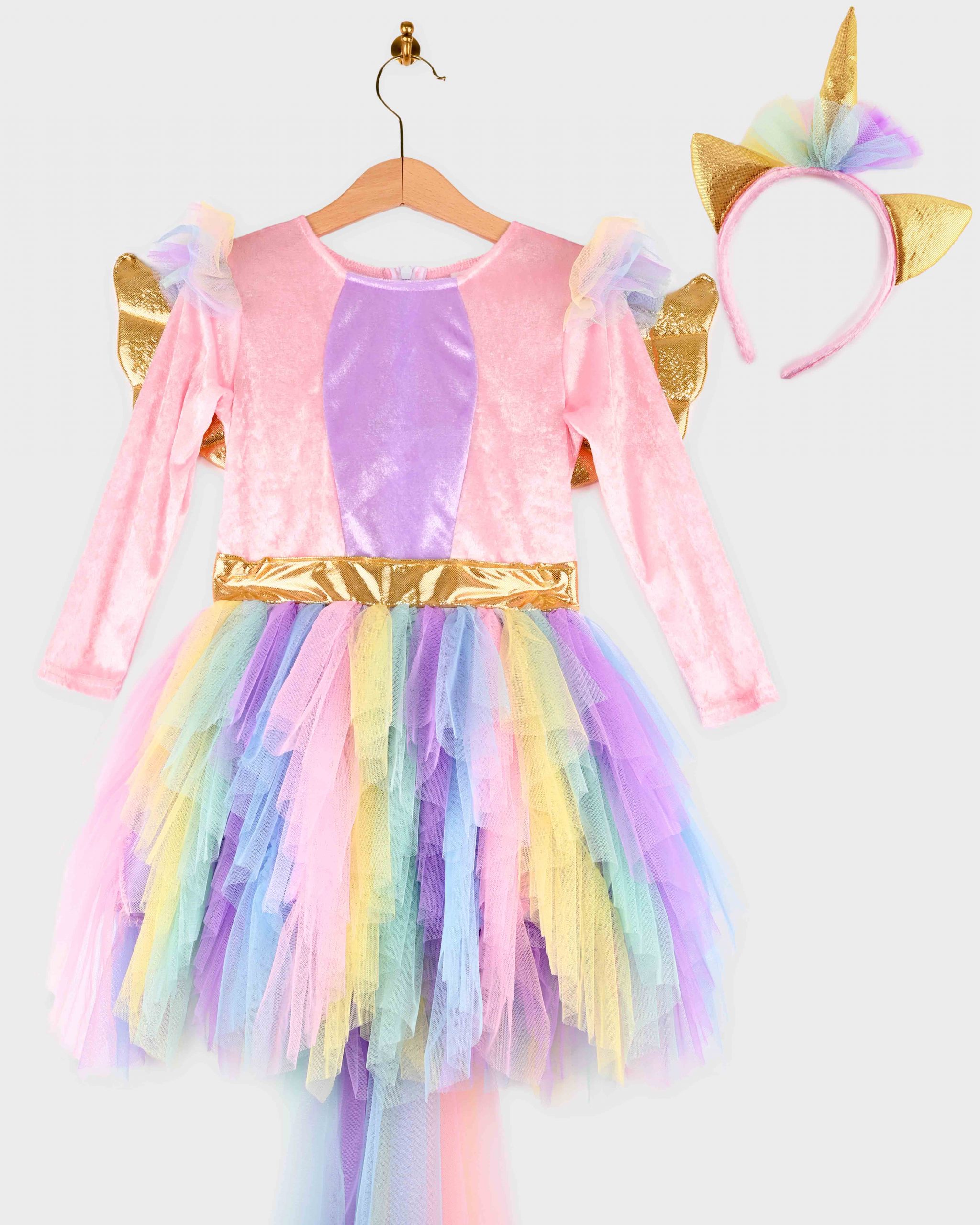 När du ser en REGNBÅGE på himlen, kan det mycket väl vara så att det bara är spår efter en enhörning som har galopperat förbi. Med regnbågskjol, guldhorn och glansiga vingar kan du leka, drömma och sprida glitter över hela Sagovärlden.