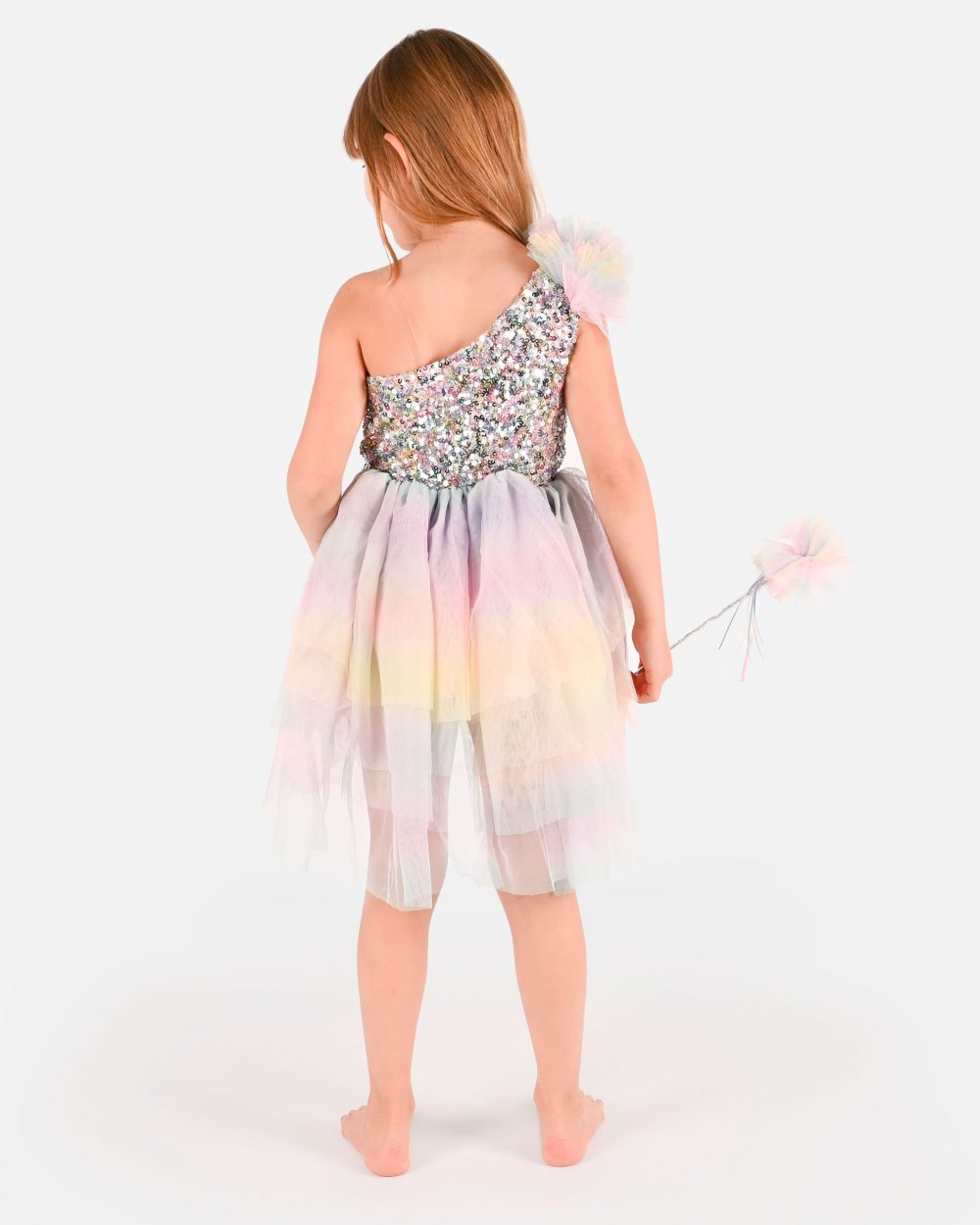I en värld där glitter aldrig tar slut är denna klänning det självklara valet för alla som vill vara en gnistrande fé för en stund. Perfekt för förtrollade kalas, dansande drömmar eller bara en vanlig dag som snabbt kan bli alldeles magisk.