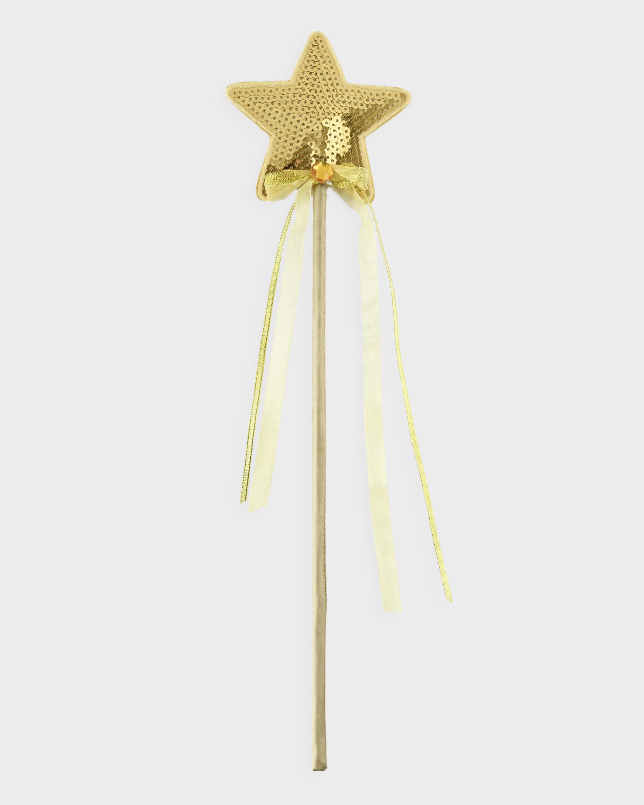 I Sagovärlden är trollstaven MAGI en sån där grej som alla har i bakfickan, redo att plocka fram och trolla lite med när lusten faller på. Trollstaven kommer i flera fina färger, här i guld, med satinklädd stav och paljett- samt fjäderprydd stjärna vid toppen.